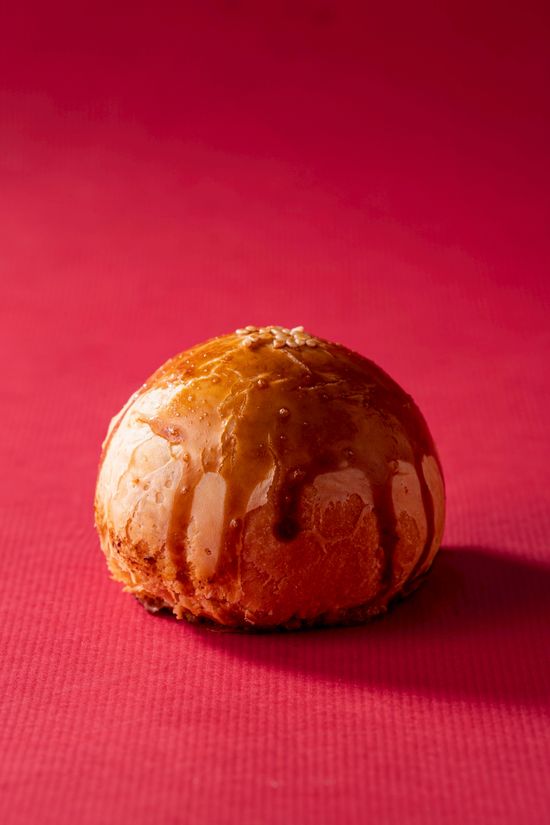 承襲台式經典蛋黃酥靈魂,選用嘉義在地鹹蛋黃,搭配細緻綿密內餡與多層次酥皮,一顆一顆以穩定火候烘焙至金黃。入口外層酥香微脆,中層柔和香甜,核心蛋黃鹹香濃郁、香氣飽滿,鹹甜平衡不厚重,展現 AjiA 對原料選擇與工藝細節的堅持。